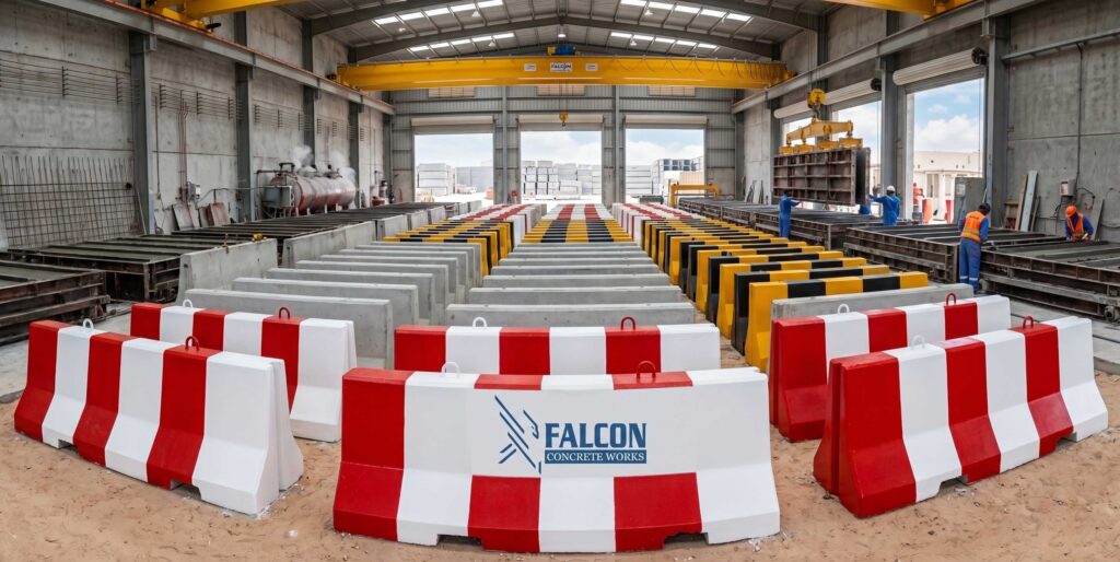 Concrete barriers are essential for safety, traffic control, and site protection across construction and infrastructure projects. At Falcon Concrete Works, we manufacture and supply high-strength precast concrete barriers designed for durability, stability, and long-term performance in demanding environments. We supply concrete barriers across the UAE including Abu Dhabi, Dubai, Sharjah, Ras Al Khaimah, and Umm Al Quwain, supporting contractors, developers, and government projects with consistent quality and timely delivery.